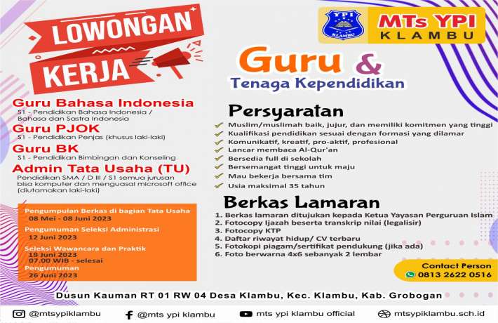 Diberitahukan kepada siswa-siswi MTs YPI Klambu. Berdasarkan hasil rapat Guru dan...